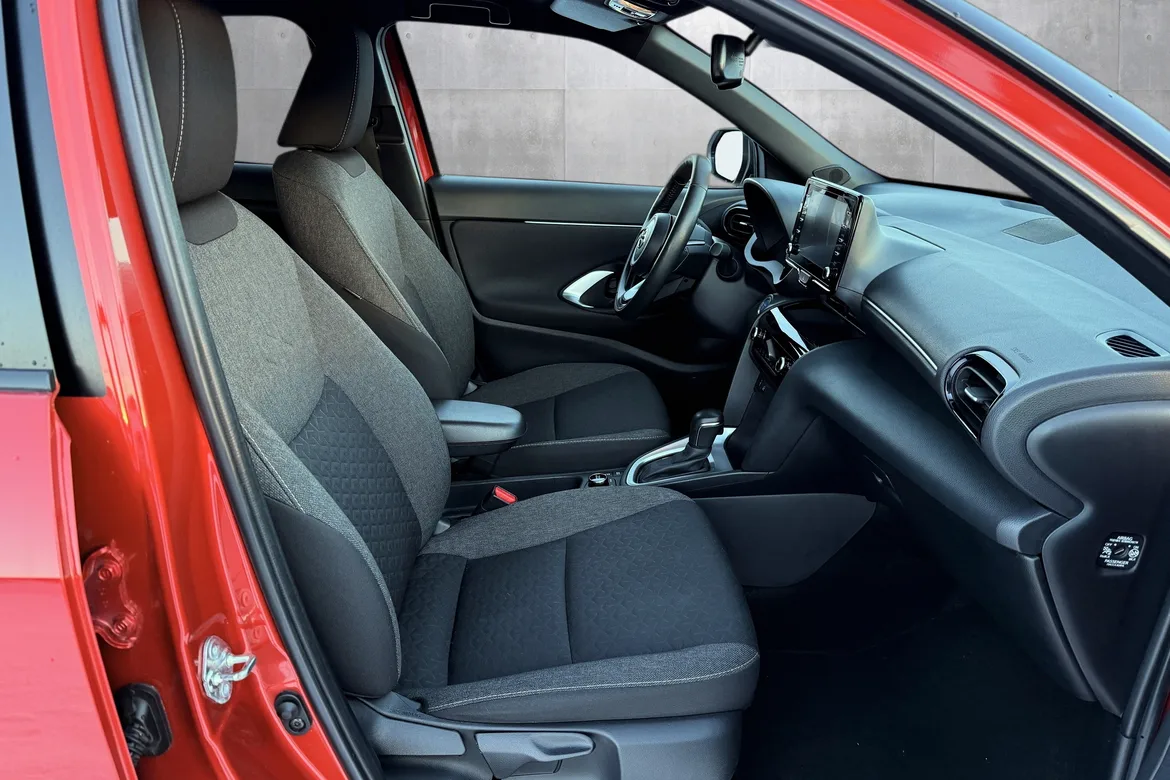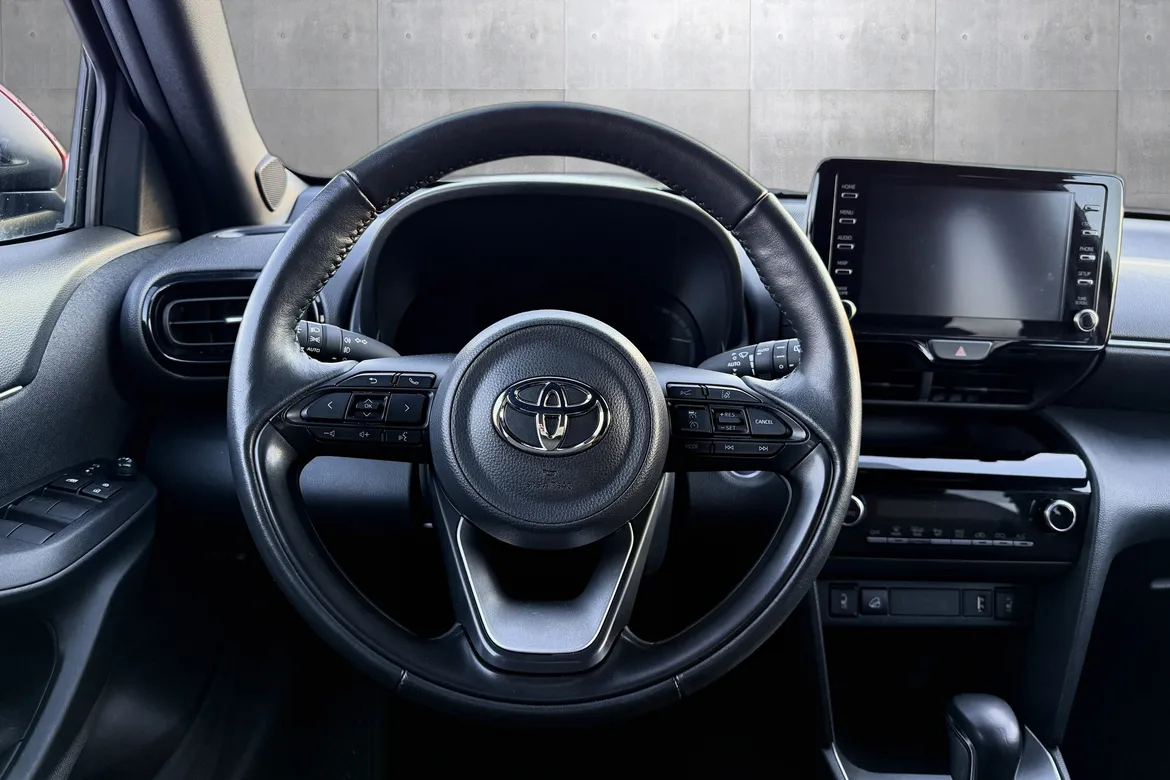 Toyota Yaris Cross er en kompakt SUV som kombinerer et flott design med ekte SUV-egenskaper. Den forhøyede sittestillingen og romslige kupéen gir deg god oversikt over veien og en komfortabel kjøreopplevelse i hverdagen.