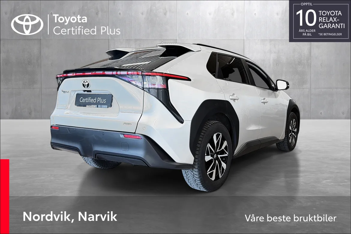 Bilen byr på god innvendig plass, samt høy nyttelast for bilklassen. En av de første tingene man merker når man setter seg inn i en Toyota bZ4X er de helt fantastisk deilige setene denne bilen har. Myke, men med god støtte. Bilen har en gjennomgående god byggekvalitet og er godt støydempet. bZ4X er en av Norges mest populære biler, og er et godt valg for deg som setter pris på den tryggheten og kvaliteten man får når man velger en Toyota!